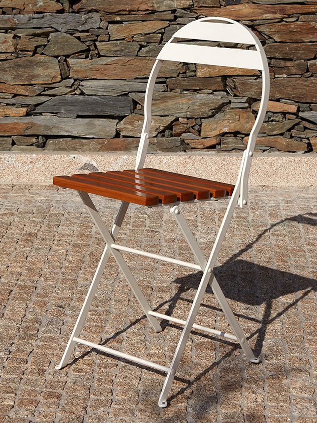 Structure en acier de 20 x 6 mm métallique peint avec peinture époxy. Assise et dossier en lattes de bois izombé vernis marine pour usage extérieur.
