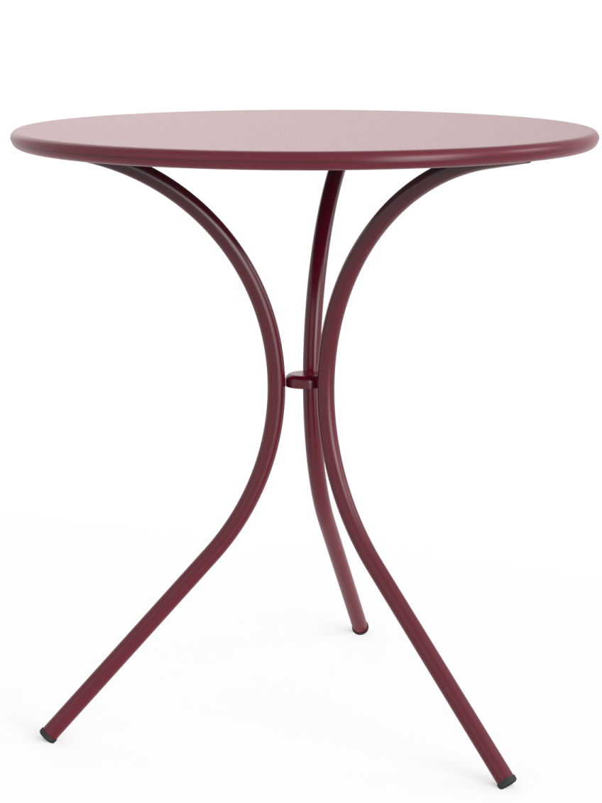 Table repas avec pietement tube 22 x 1,5 mm métallique de trois pieds et plateau métallique, peint avec peinture époxy.